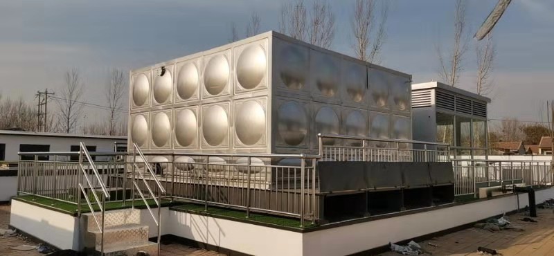河北省滄州市東光縣河畔新城裝配式不銹鋼保溫水箱已經安裝完成,保溫為聚氨酯保溫50厚,外殼為304不銹鋼。 安裝效果如下: