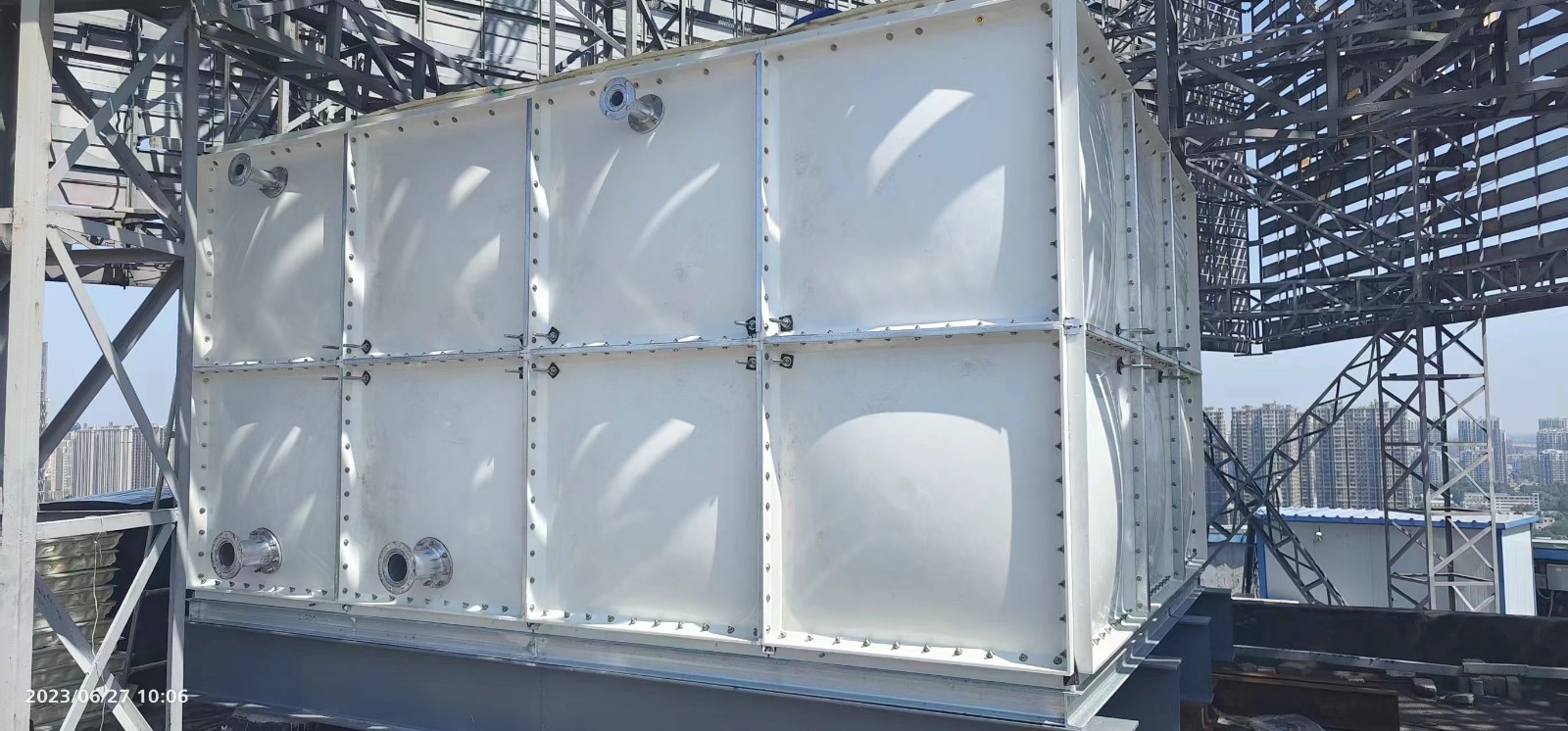 SMC玻璃鋼水箱是一種應用于各類工業、民用建筑給水、暖通等的水箱,特點是表面光滑、無裂紋、焊縫無氣泡。SMC玻璃鋼水箱是指用玻璃鋼做為原材料加工而成的水箱。